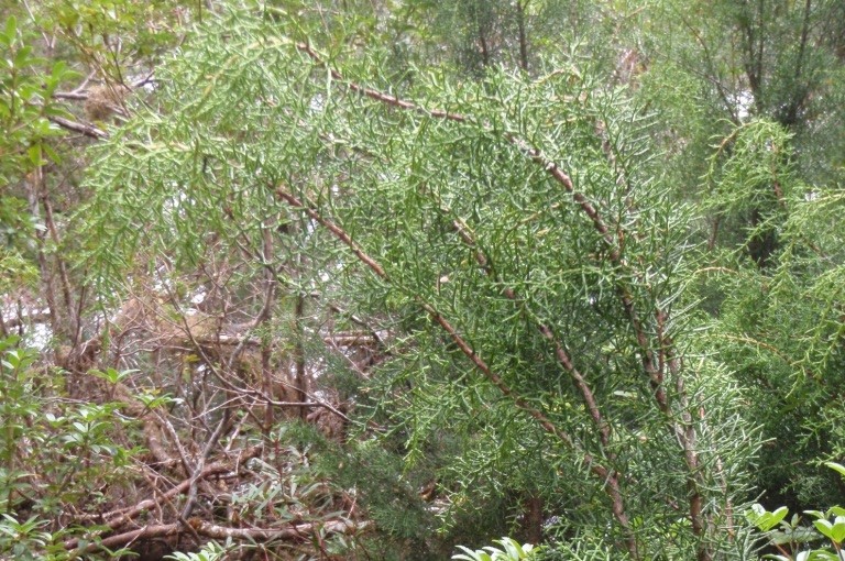 Evergreen shrub or conical rainforest tree with aromatic bark and leaves. Slow growing, requiring constant moisture.