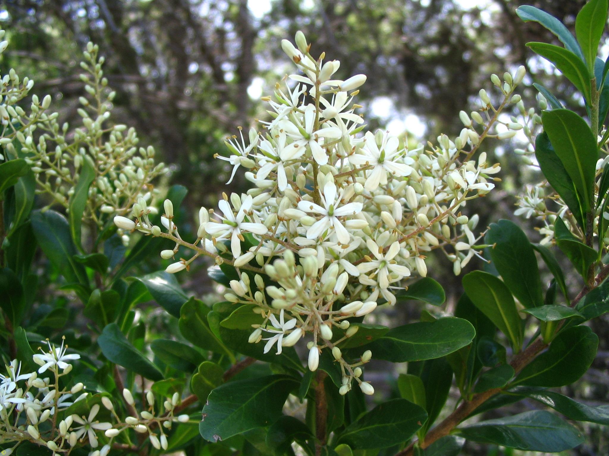 Slender shrub with shiny leaves and cream/green tubular flowers in autumn/winter/spring. Excellent for providing food and shelter for birds. Adaptable to a variety of conditions.