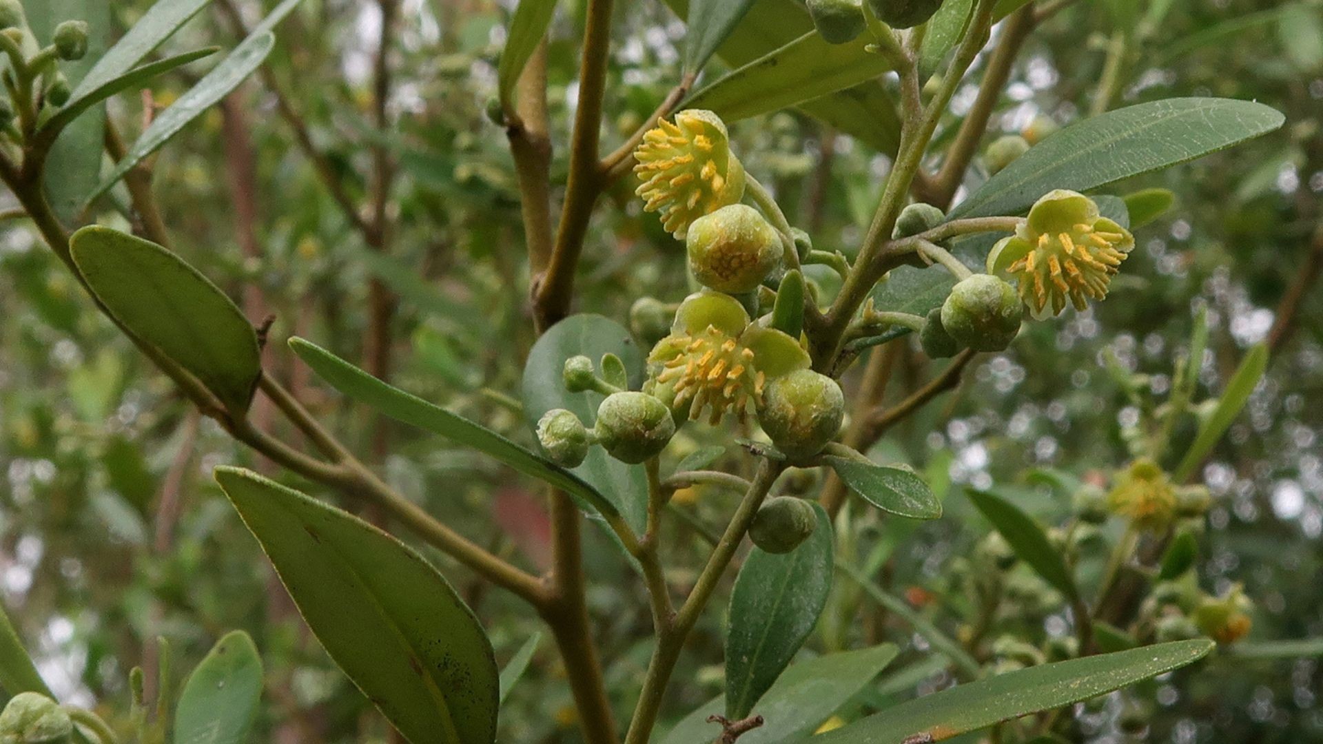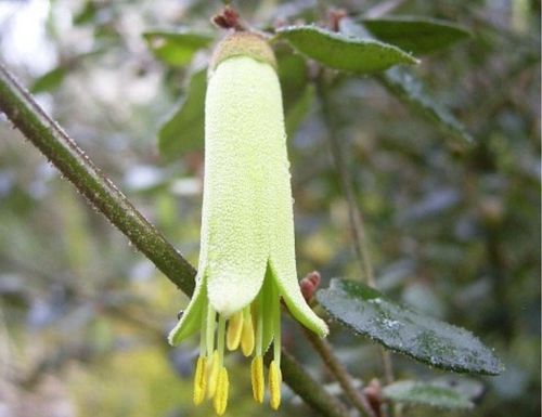 Attractive, rare, slender shrub. Cream flowers with prominent yellow stamens in terminal clusters in spring/summer. Thrives in a well-drained part shade spot or in a pot.
